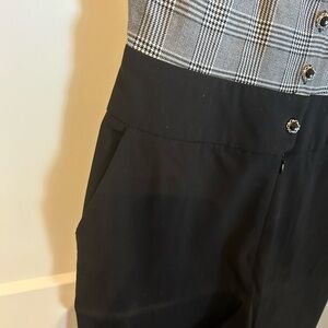 Chic sleeveless jumpsuit with a stylish plaid top. Perfect for versatile wear.
