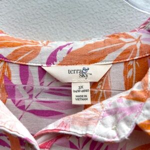 Terra & Sky Linen Top Women 3X Button Down Floral Multi Resort Wear Tropical Beach Vacation Island Travel Colorful Summertime
