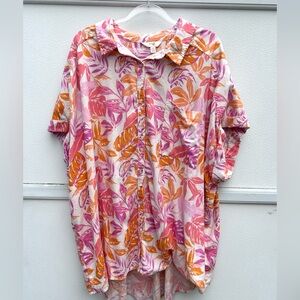 Terra & Sky Linen Top Women 3X Button Down Floral Multi Resort Wear Tropical