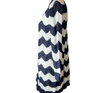 Cozy Crochet Open Long Cardigan Navy And White Women’s Medium Retro Boho