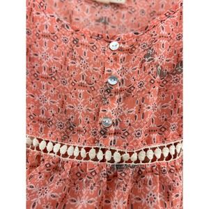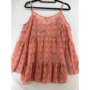 Sorad Cold Shoulder Bell Sleeve Peasant Blouse Coral Floral Print Size S
