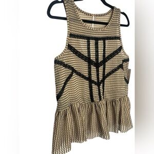 NWT Free People Toasted Almond Women's Tank Top Sheer Peplum Cutout Size Small