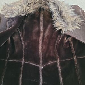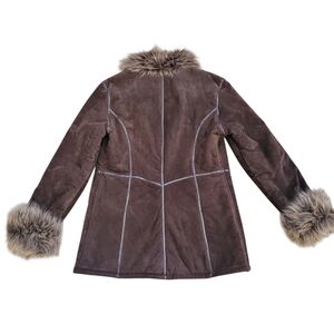 Stay warm and stylish with this beautiful Genuine Suede Leather Brown Penny Jacket with luxurious faux fur trimmed collar and cuffs. Button closure, front pockets. The inside fur is so soft and cozy. Very comfortable and warm jacket. Premium craftsmanship.
