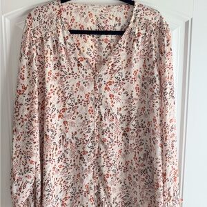 Soft and feminine Maurices floral blouse with a cream base and red floral print. Features a relaxed fit with long sleeves and a flattering neckline, making it easy to dress up or wear casually. Lightweight and comfortable for everyday wear or layering. Size XL. In like new condition with no visible flaws. Ships next business day from a smoke-free home.