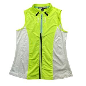 Jamie Sadock Medium Yellow White 1/4 Zip Collared Polo Sleeveless Polyester Blen