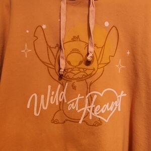 Disneys Stitch is "Wild at Heart" and you will be too in this beautiful peach and pink sweat outfit. Vibrant orange color. Ideal for fans. Drawstring pants with pockets.