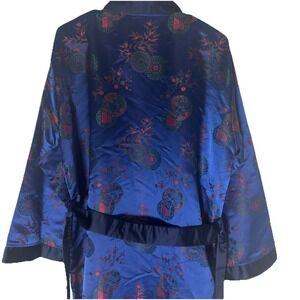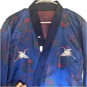 Vintage Silk Blend Chinese Hand Embroidered Kimono Robe Flower Birds Crane Stork