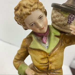 Antique Leviton Lamps Porcelain Figural Boudoir Figurine Man Woman Pair Brass