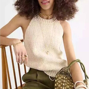 J Crew size Large Cream High Neck Sweater Top Pullover Chunky Knit BI939