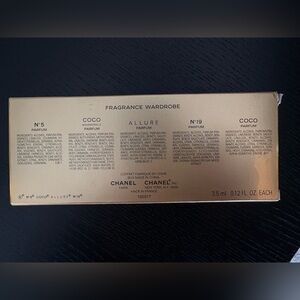 Set of mini CHANEL mini sizes of No 5, Coco Mademoiselle, No 19, Coco, Allure. Elegant gold and white packaging. Perfect for gifting. Vintage collectibles condition.