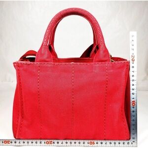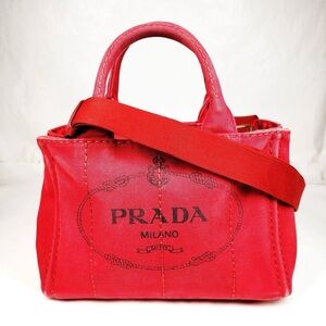Prada Tote Bag Red Canvas