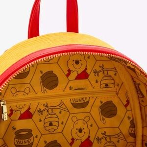 Charming Loungefly mini backpack featuring Winnie the Pooh. Bright yellow and red design, red pocket and some features are corduroy! Super cute!