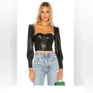 NWT NBD Black FIA Faux Leather Long Sleeve Crop Top Corset
