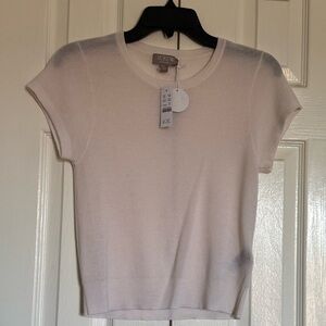 NWT J. Crew Ivory Cashmere Top Ribbed featherweight Short Sleeve T Shirt Medium