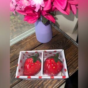 Adorable Strawberry Figural Salt and Pepper Shaker Set - NIB