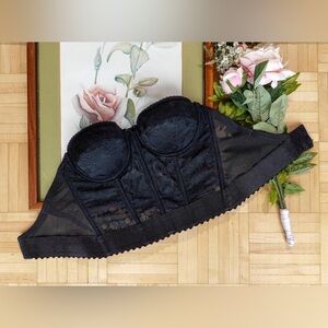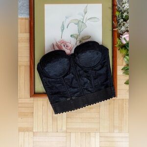 Lovely vintage tuxedo black lace longline bustier bra top.