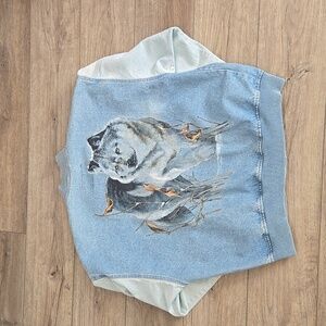 Retro 80's/90's Canadian Wolf Motif Light Blue Denim Streetwear Bomber Jacket