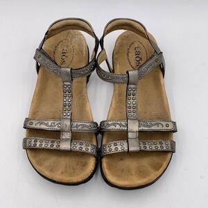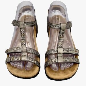 Taos Award Sandal Silver Pewter Leather Studded Women 7 Comfort Arch Support