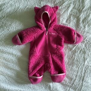 Warm and cozy fleece footie. Hooded design with cute ears. Ideal for cold weather.