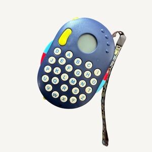 B. Toys Alphaberry Handheld Alphabet Learning Toy, Navy Blue — Interactive educational tool for toddlers. Features a full A-Z keyboard to help children learn letters and phonics through sound and music. Compact handheld design includes a small screen and a convenient wrist strap for on-the-go play and learning. Good pre-owned condition with some light surface wear from normal use. Tested and functional. Great for car rides or early childhood development.