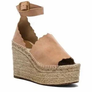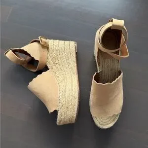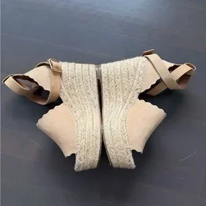 Chloe Lauren Espadrille Suede Beige Wedges size 8