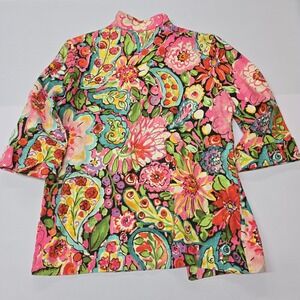 Vintage Painted Pony Uniquely USA Women's Jacket Size M Floral Print Mock Neck
