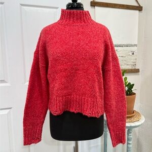 Cozy Red Distressed Hem Sweater