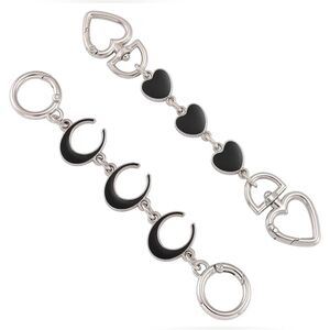 New! 2 pcs black and silver purse strap extenders. Charms are Cs/moons and hearts. Color may vary due to camera lighting.
