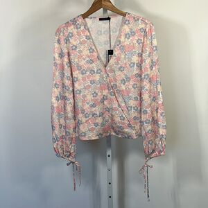 BOBI BLACK Women’s Faux Wrap Floral Top Pink/Blue Size Small