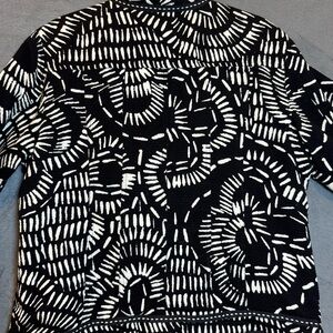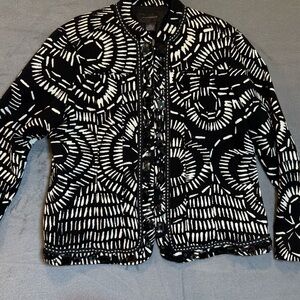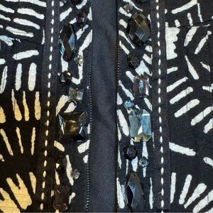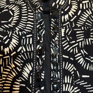 Investments black and white patterned , bejeweled, 100% cotton jacket is perfect for any occasion. Its unique design adds a touch of elegance to your wardrobe. Very good condition