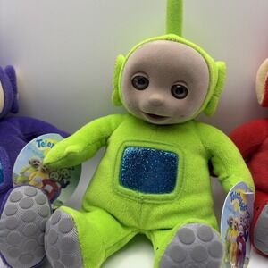 The Teletubbies plush 1998 8" Set of 3 with tags is a vintage collectible toy set featuring characters from the popular Teletubbies franchise. Made by the brand Eden in 1998, these small plush toys are perfect for children aged 3-4 years old. The set includes three adorable Teletubbies plush toys, each wearing their signature outfits and still sporting their original tags. Ideal for fans of the Teletubbies or collectors of vintage toys, this set offers a nostalgic and cuddly addition to any toy collection.