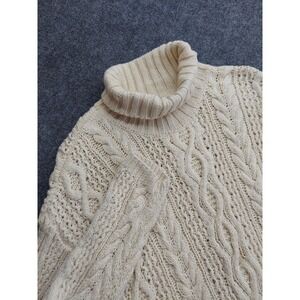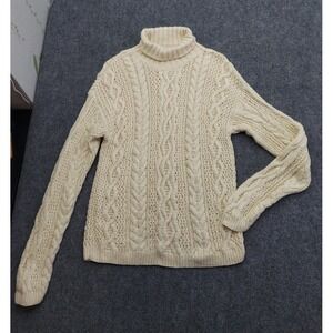 Yorkshire Knitting Sweater Womens Large Beige Fishermans Turtleneck Cable Knit