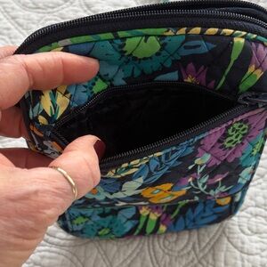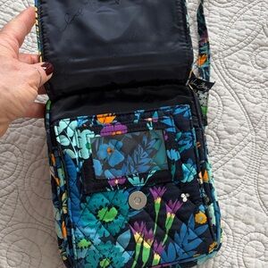 Stylish floral crossbody bag with vibrant colors. Lots of pockets inside and out. Perfect for adding a pop of color to any outfit.