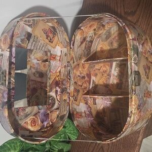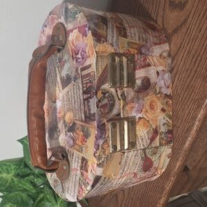 Embrace elegance with this floral vintage-style women's bag. Perfect for adding a touch of charm to any outfit. Interior dividers, mirror inside, some wear, Nonsmoking home FAST SHIPPING SAME DAY
