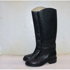 Sleek black leather boots. Over the knee style. Timeless elegance by CHANEL. Originally $1725 SERIOUS OFFERS ONLY PLEASE