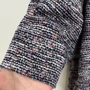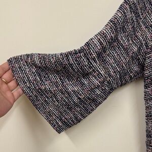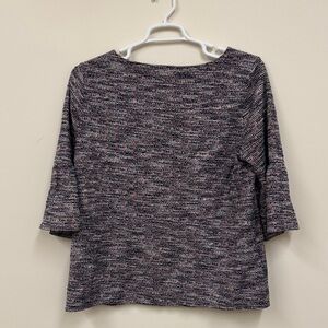 Elevate your wardrobe with this stylish black and white knit top. Perfect for any occasion, this top offers both comfort and elegance.