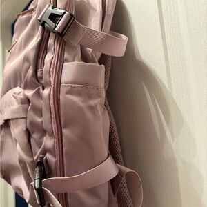 Chic pink backpack with multiple compartments. Perfect for daily use.