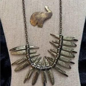 Elevate your style with this stunning Vintage brass statement necklace & brass elephant brooch. Perfect for any occasion, this piece adds a touch of elegance to your outfit. A True Timeless Edition to Your Jewelry Collection.