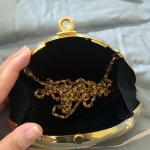 Stylish gold clutch with elegant rhinestone accents. Ideal for special occasions.