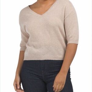 Luxurious cashmere V-neck sweater. Soft tan color. Perfect for any occasion.