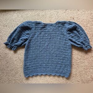 CHRISTY DAWN logan sweater short sleeve blue medium baby alpaca fur puff sleeve