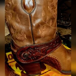 Corral Boots G1907 Ladies Golden Brown Tooled Leather Western Size 8