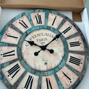 Enhance your home decor with this Wall Clock. Featuring a charming blue and cream design, this clock adds a touch of elegance to any room. Perfect for those who appreciate classic style. Brand new in box.