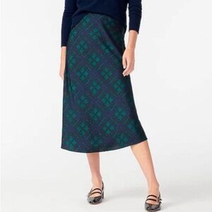 J. Crew Pull-On Matte Satin Slip Midi Skirt Black Watch Tartan Size Small