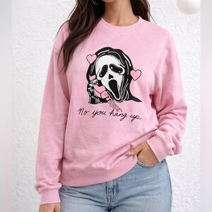 💗 Pink Ghostface Graphic Sweatshirt “No You Hang Up”