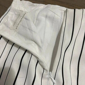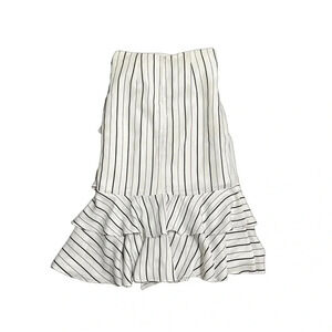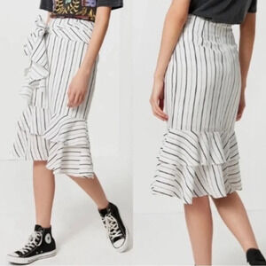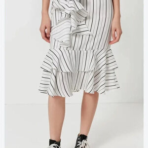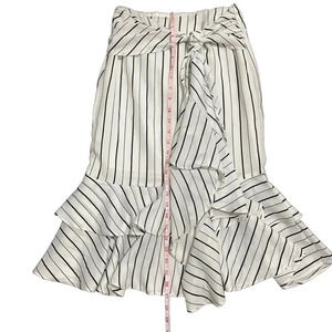 Striped Ruffled Midi Waterfall Skirt. White with black stripes. XS