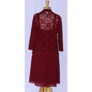 NWOT Fanny #1820 Short Lace and Chiffon Mothers Formal Dress-Size XL-BURGUNDY