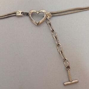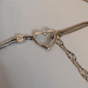 Brighton Vintage Silver Heart Double Snake Chain Belt