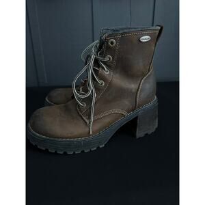 Vintage Skechers Y2K Plateau Mesa Brown Leather Chunky Moto Lace Up Combat Boots