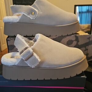 Step into comfort with these stylish beige slip-on platform shoes. Perfect for casual outings, these shoes offer both style and support.